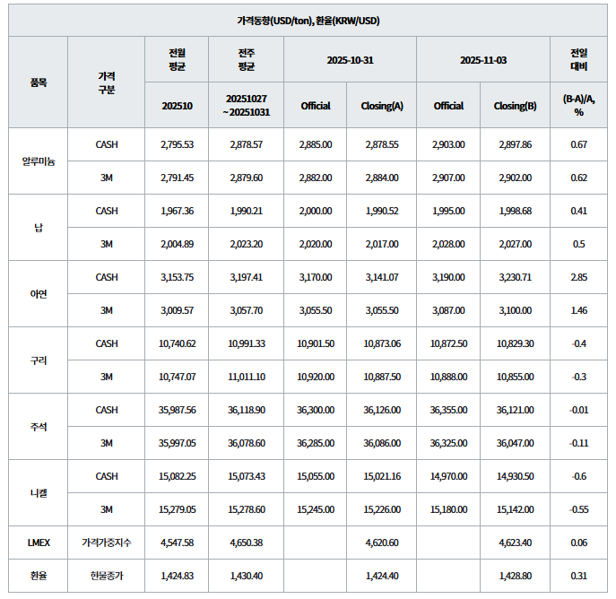 * 런던금속거래소 정규장(오후장,PM Kerb trading)마감시간(현지시간 17:00)에 발표되는 가격으로 선물옵션 미청산 포지션에 대한 손익평가의 기준가격임.